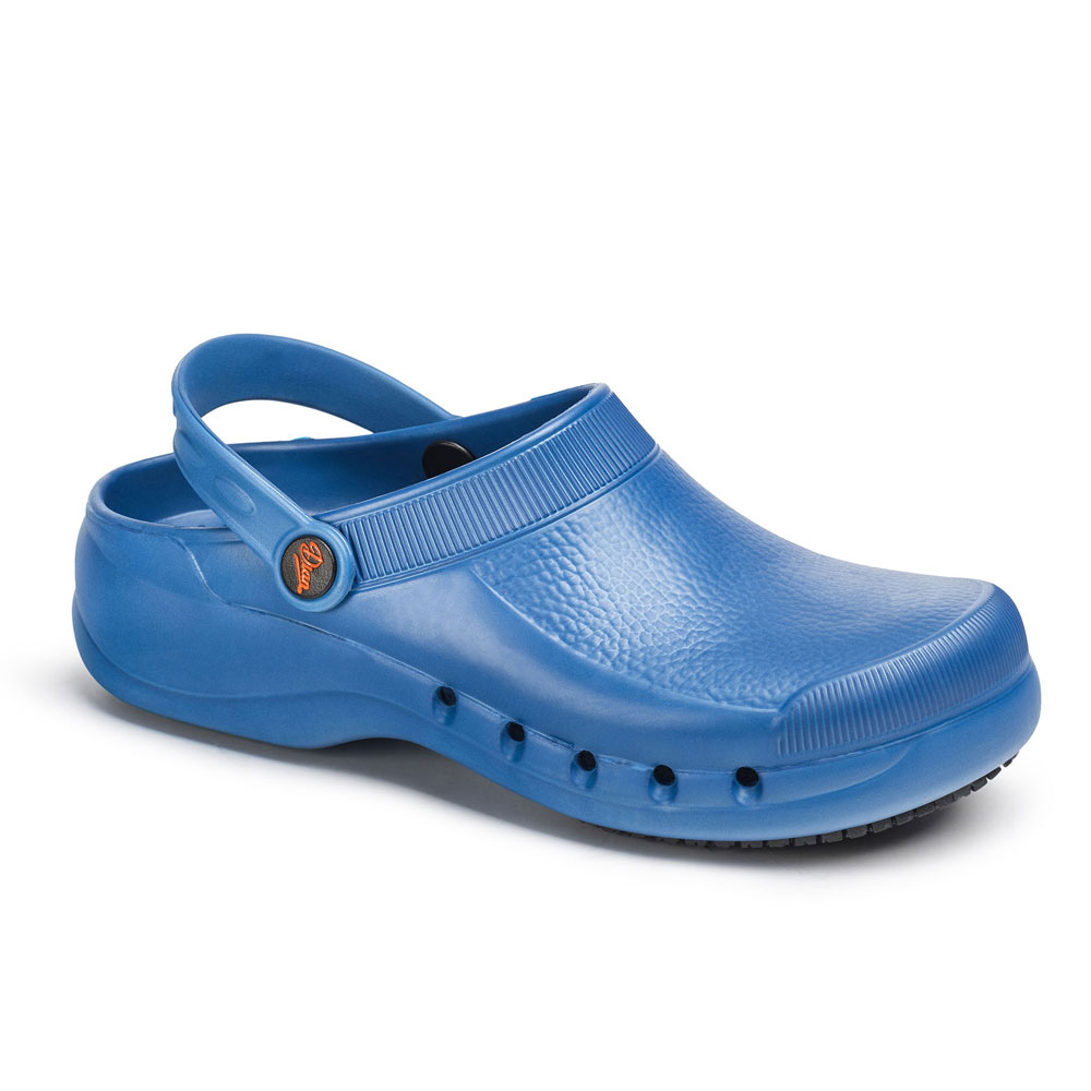 Perforado en los laterales para facilitar la transpiración, la limpieza y evitar la penetración directa dentro del zueco de líquidos o fluidos.